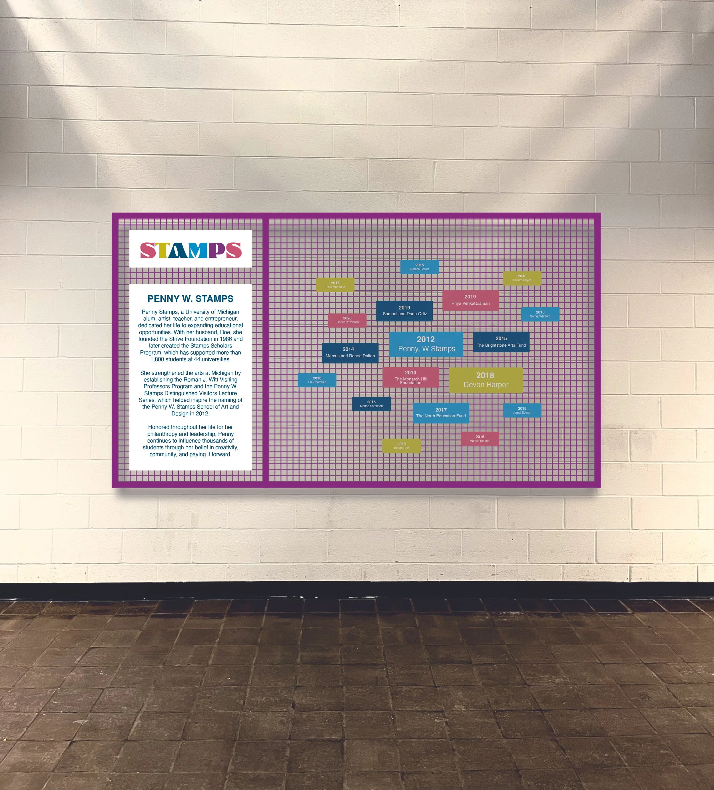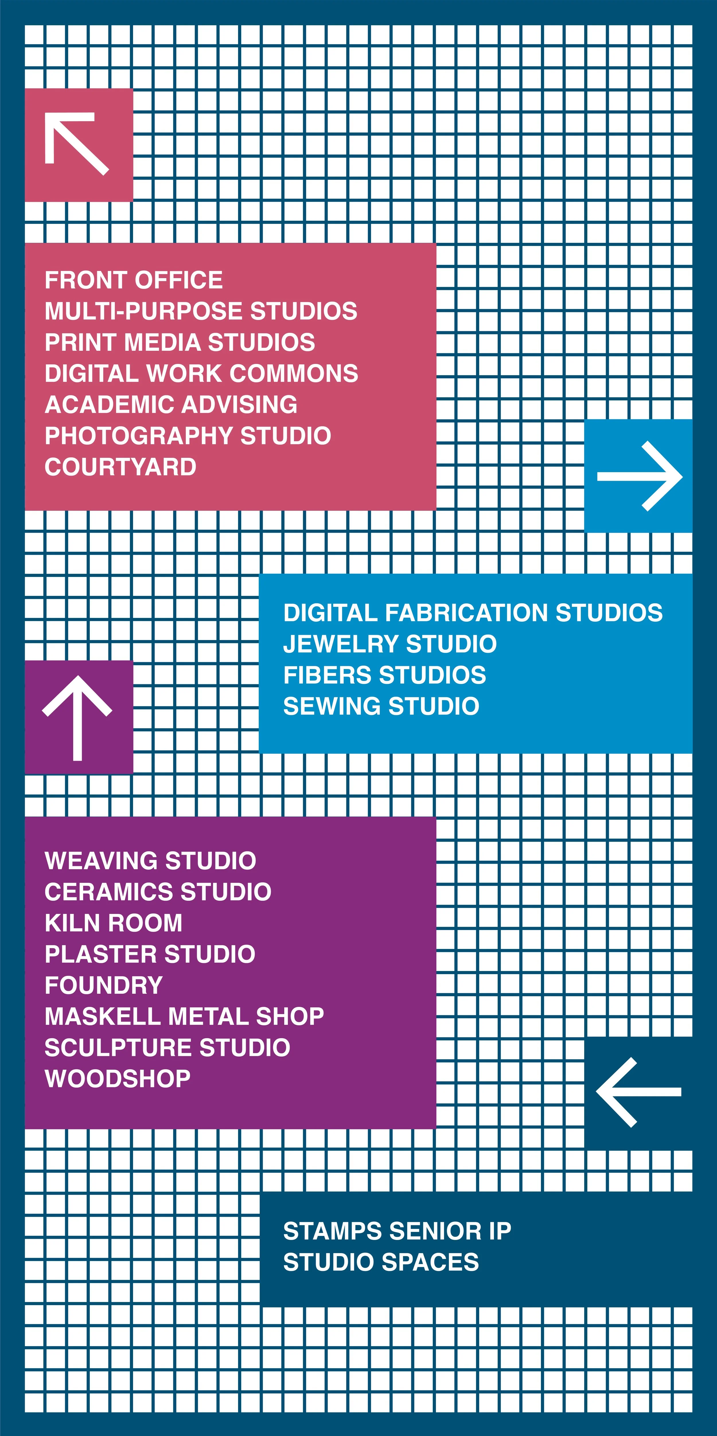 This project focuses on designing a comprehensive wayfinding system for the Penny W. Stamps School of Art & Design, a building known for its challenging layout and navigation issues. The goal is to develop a clear and cohesive visual language, using typography to create a system that is both functional and expressive.